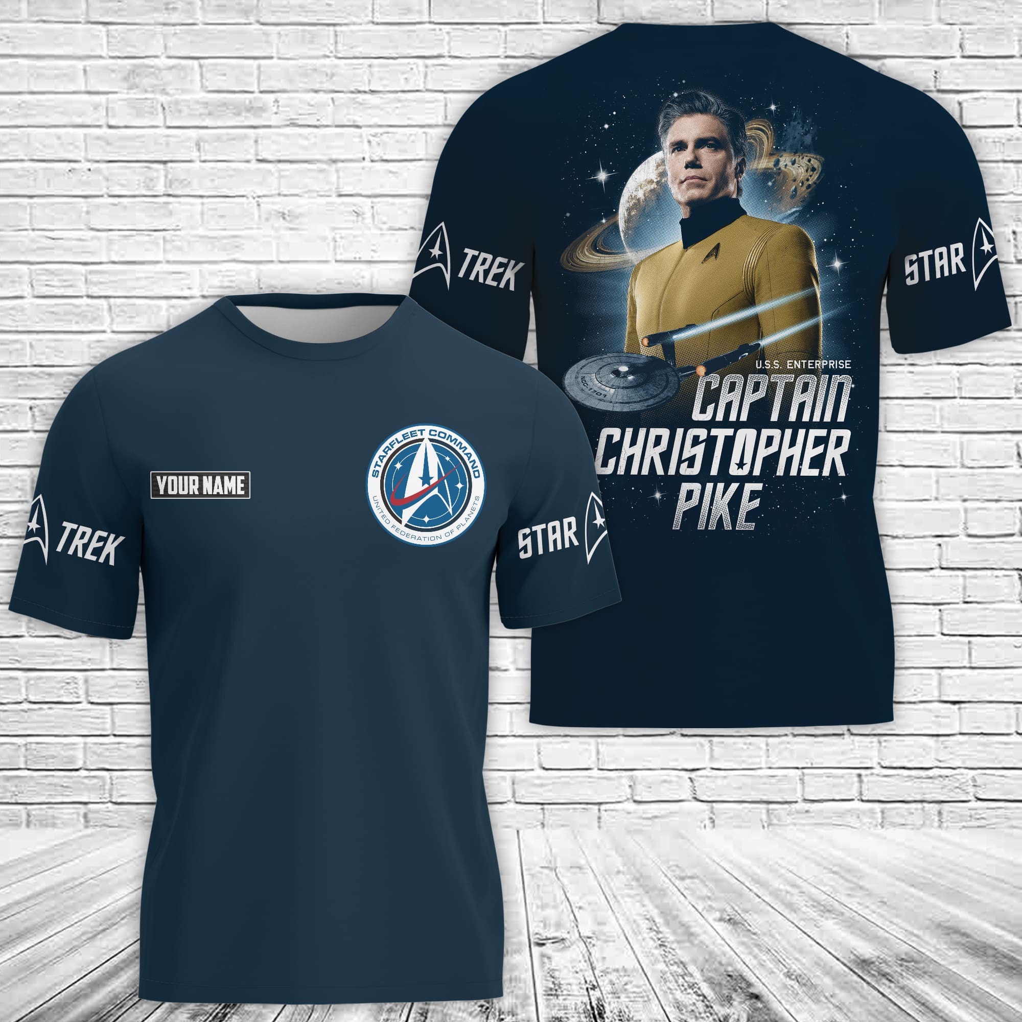 This Personalized Star Trek Captain Christopher Pike USS Enterprise 3D Apparel makes a perfect gift for Star Trek Fan.