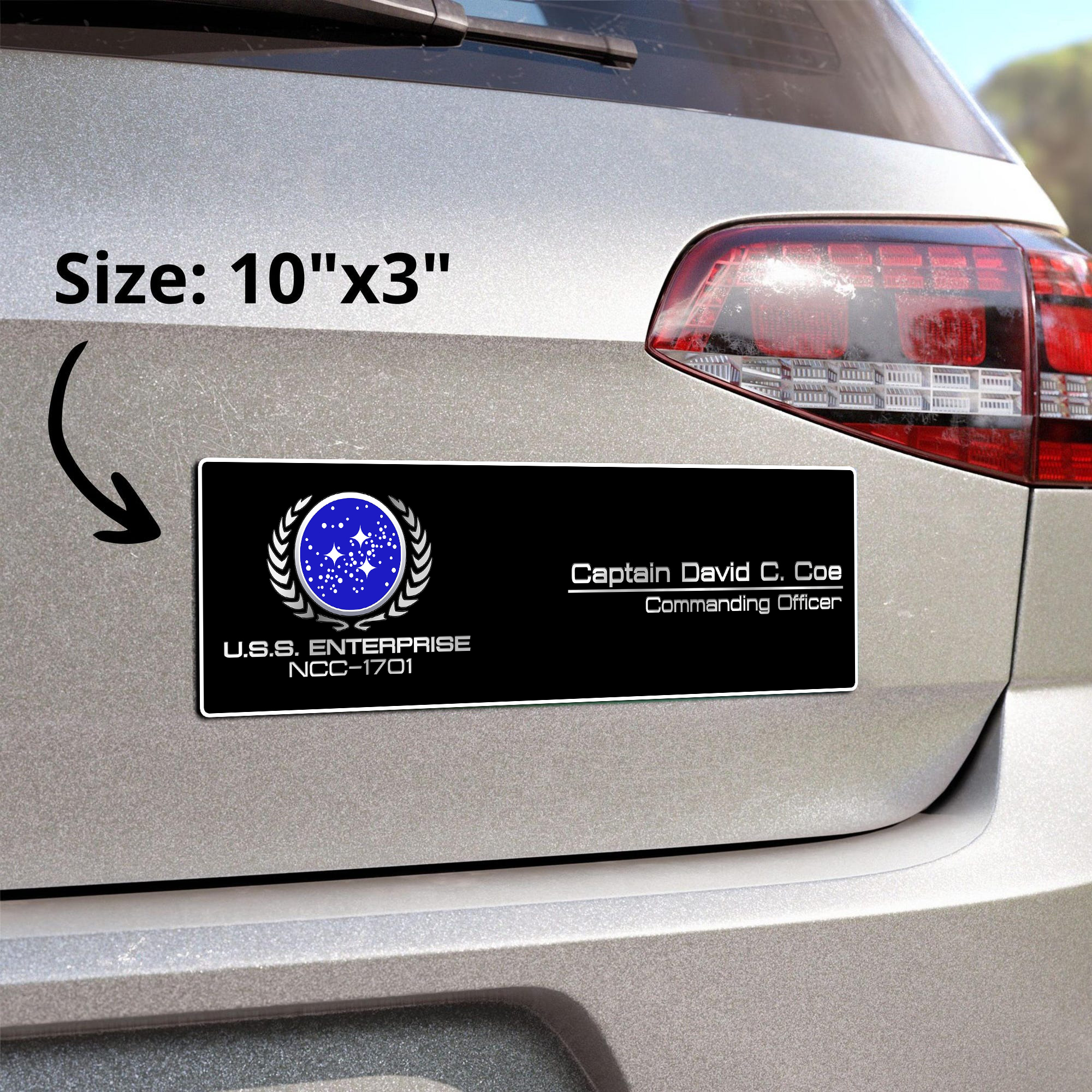 Take your Starfleet pride beyond the stars and onto the streets with this personalized Star Trek car emblem! Custom-crafted for Trekkers, this premium adhesive badge lets you add your name, rank, ship name, and registry number, making your vehicle truly one of a kind.