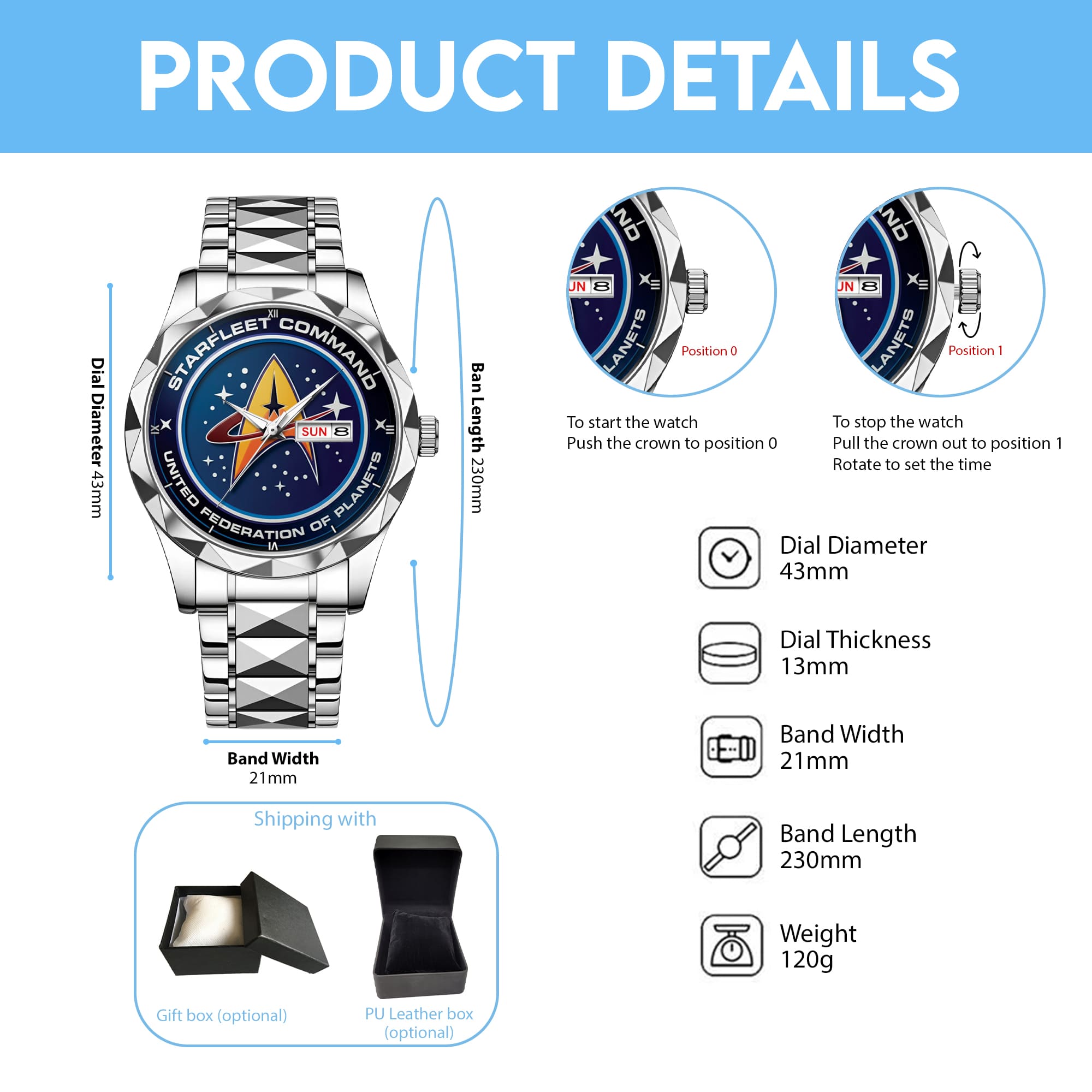 This Starfleet Command United Federation Of Planets Alloy Luxury Quartz Watch makes a perfect gift for Star Trek fans.